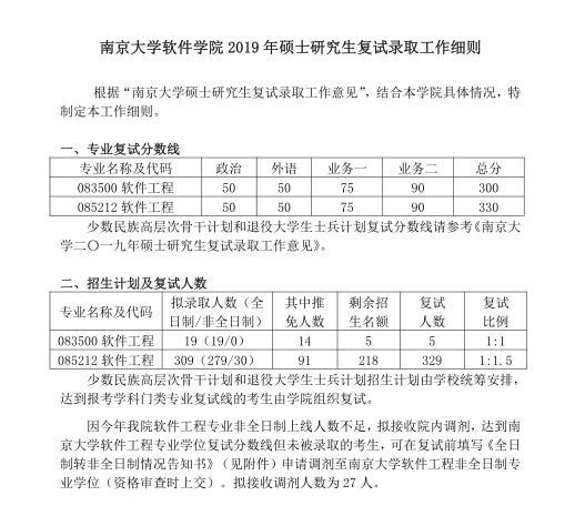 附件:南京大学软件学院2019年硕士生复试录取工作细则