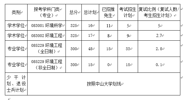 表一 中山大学环境科学与工程学院复试分数线
