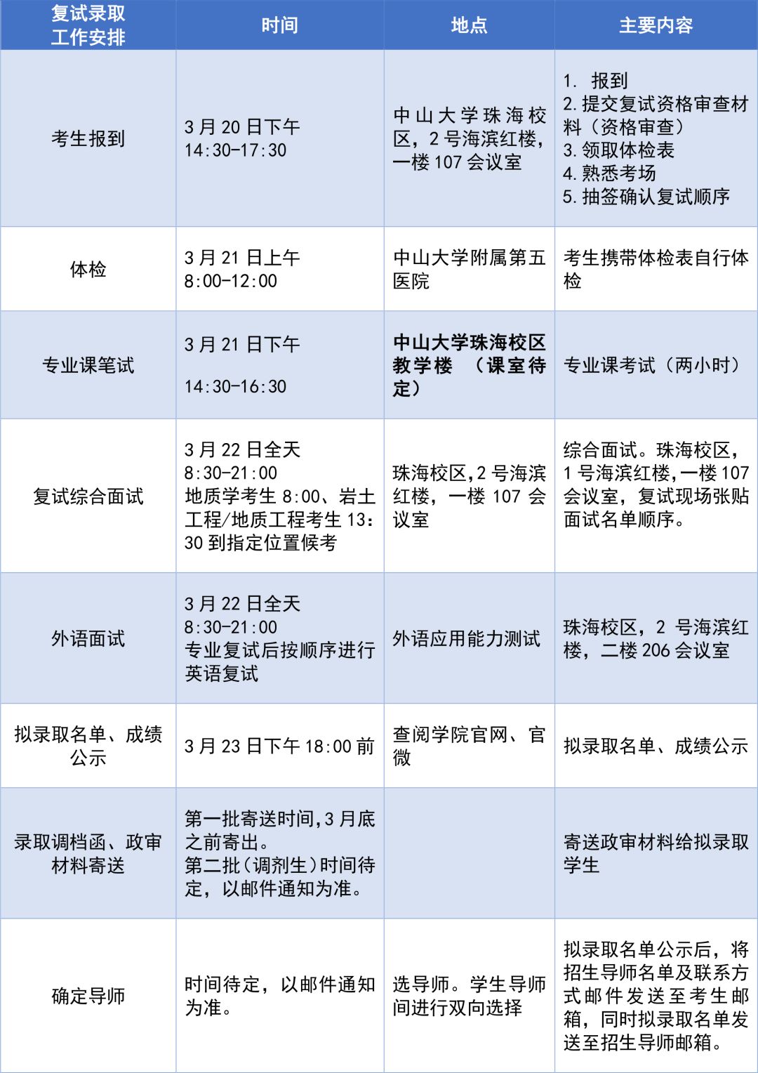 复试地点:广东省珠海市香洲区唐家湾中山大学珠海校区,2号海滨红楼,一楼107会议室。
