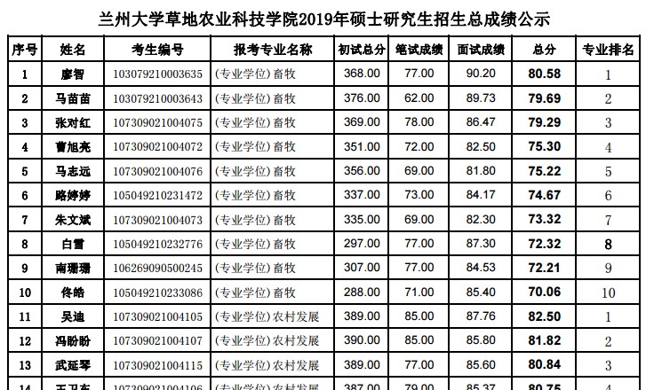 附件:兰州大学草地农业科技学院2019年硕士研究生招生总成绩公示