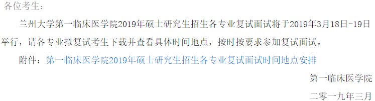 附件:兰州大学第一临床医学院2019年硕士研究生招生复试面试时间地点