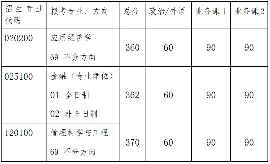 1. 凡报考我院应用经济学、管理科学与工程、金融(专业学位)专业,初试成绩符合我院复试分数线要求者,由我院按学科、专业总分从高到低的顺序确定本学科专业、方向参加复试的考生名单。