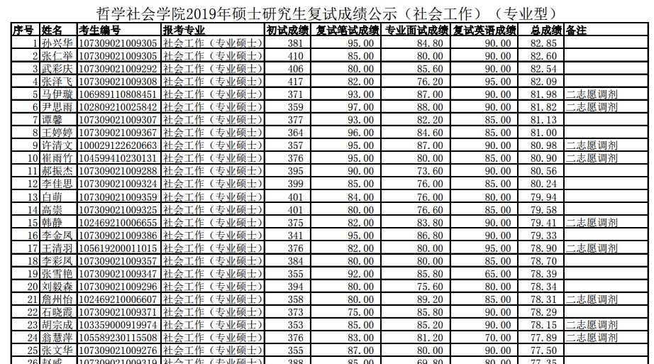 附件:哲学社会学院2019年硕士研究生招生复试成绩公示(专业型)