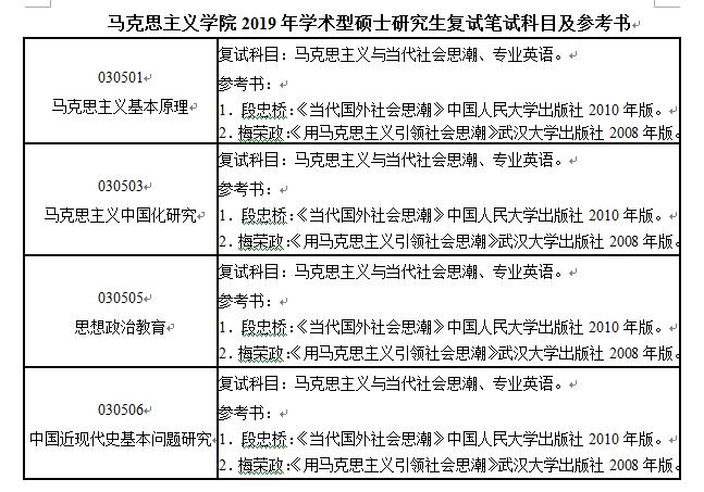 马克思主义学院2019年学术型硕士研究生复试笔试科目及参考书