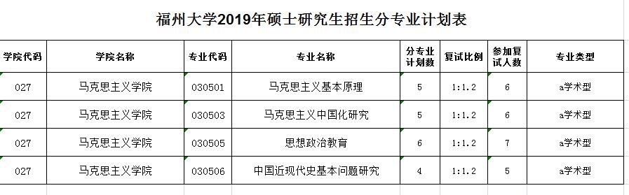 据悉,福州大学马克思主义学院2019年招收攻读硕士学位研究生复试工作实施细则、复试笔试科目及参考书、分专业计划表、学术型硕士研究生复试分数线已公布,聚英福州大学考研网小编为你整理如下内容: