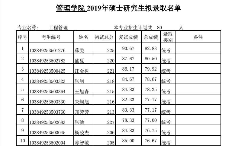 完整版请查看附件: 厦门大学2019年工程管理硕士生拟录取名单.pdf