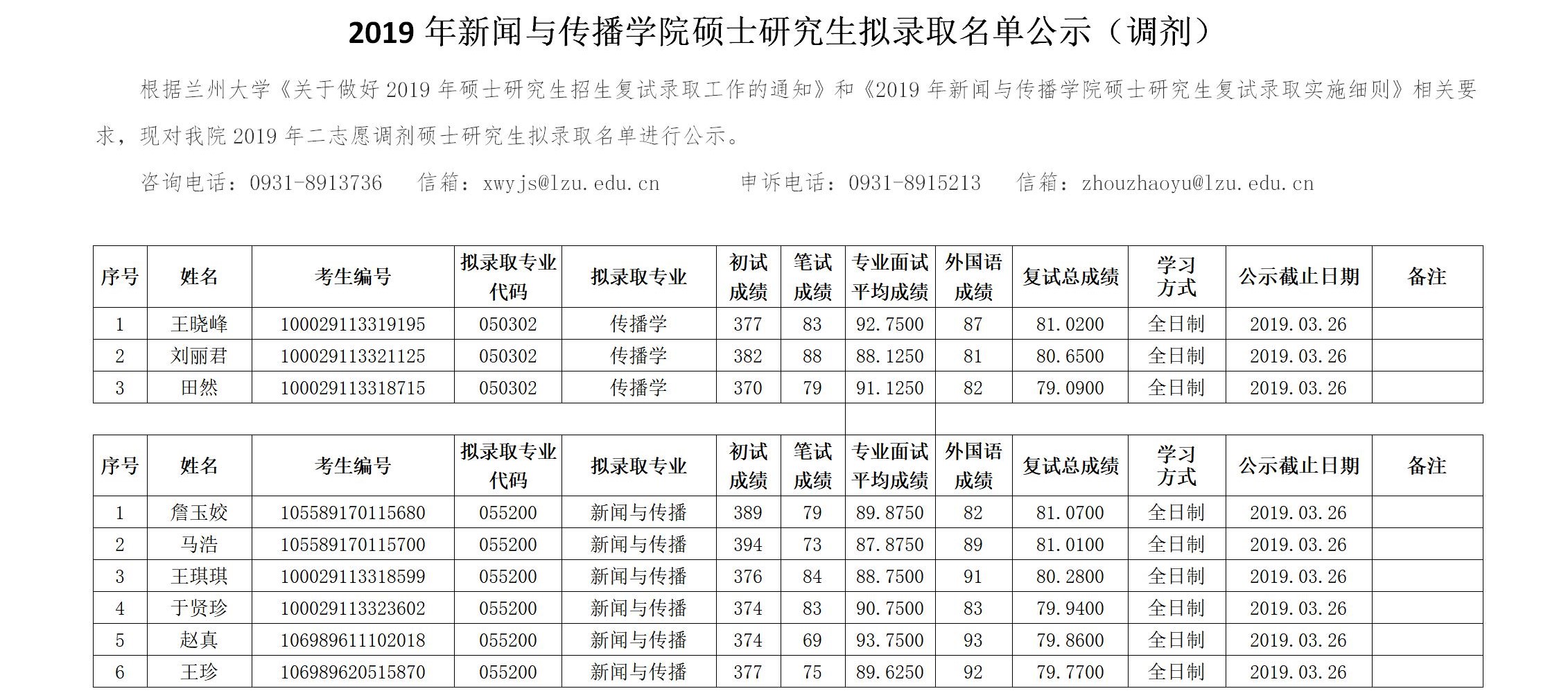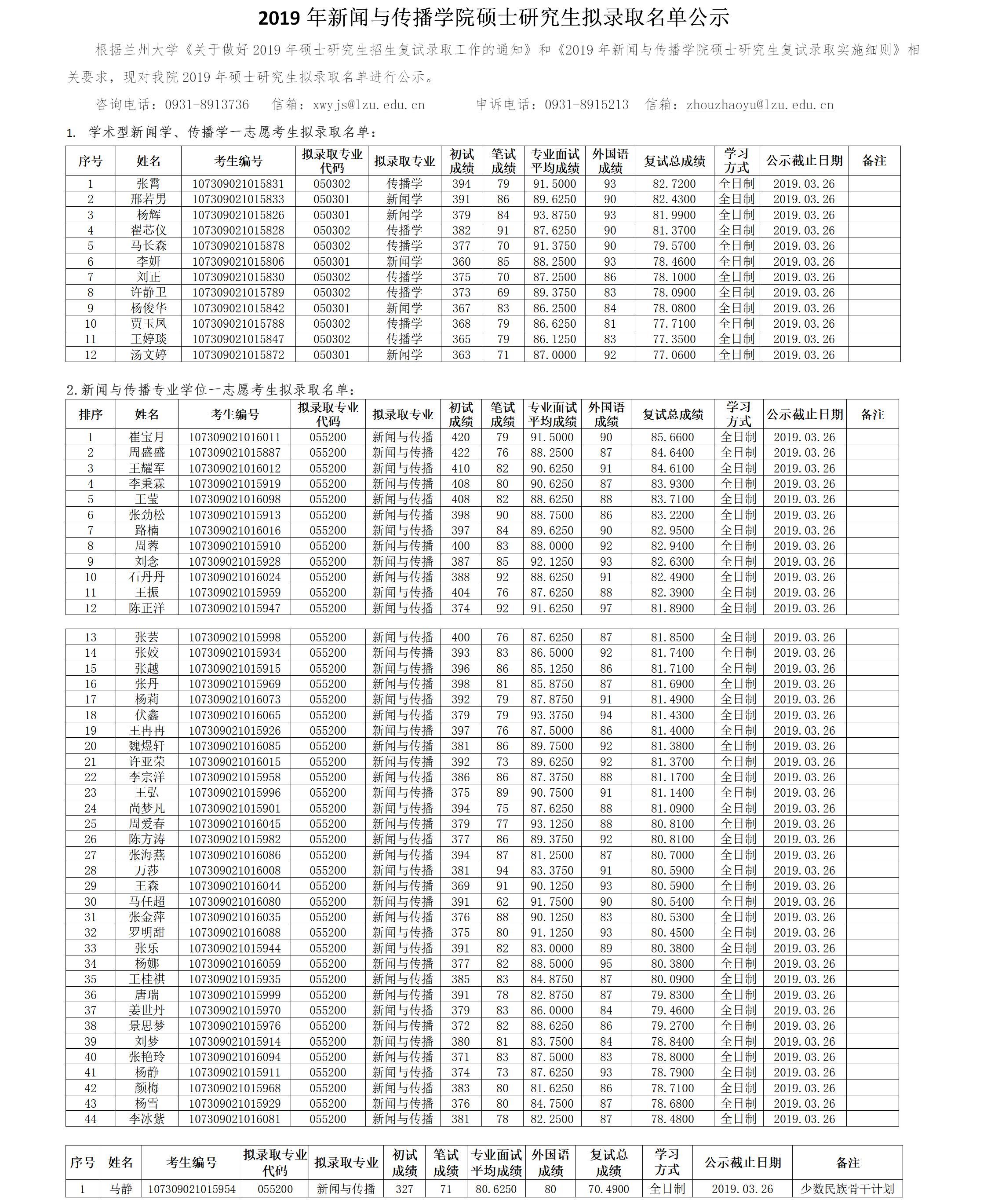 以上是聚创考研网为考生整理的"兰州大学2019年新闻与传播学院硕士研究生拟录取名单(含调剂)"的相关考研信息,希望对大家考研备考有所帮助!