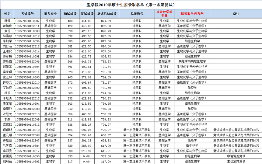 以上是聚创考研网为考生整理的"中山大学医学院2019年全国硕士生招生复试(第一志愿考生复试)拟录取结果公示"的相关考研信息,希望对大家考研备考有所帮助! 备考过程中如有疑问,也可以添加老师微信juchuang911进行咨询。