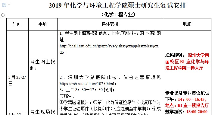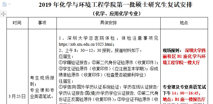 据悉,深圳大学2019年化学与环境工程学院化学、应用化学、化学工程等专业硕士研究生复试安排已公布,聚创深圳大学考研网小编为你整理如下内容: