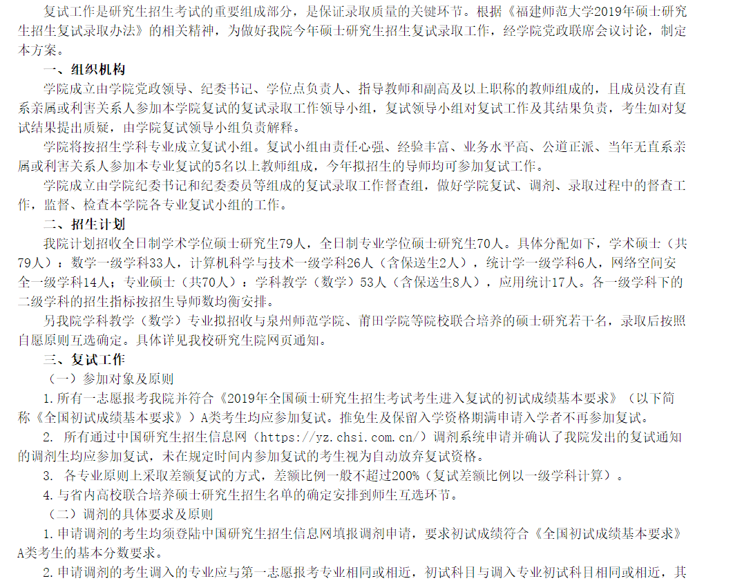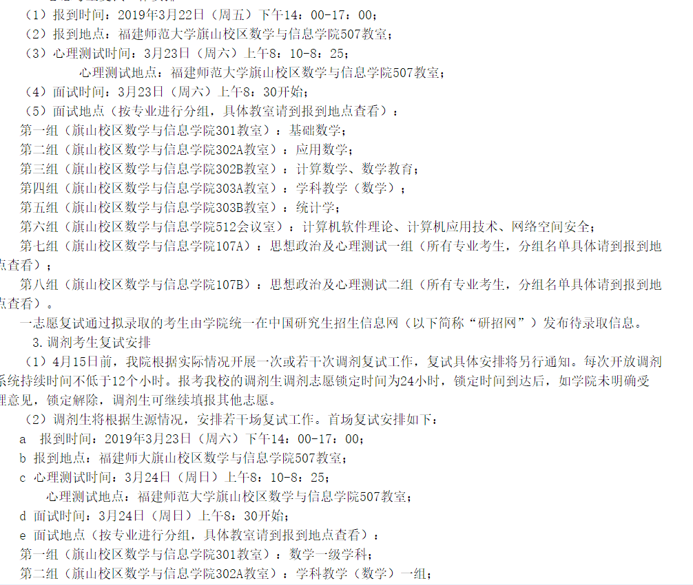 以上是聚创考研网为考生整理的"福建师范大学信息与技术学院2019年硕士研究生招生复试录取办法、一志愿复试名单"的相关考研信息,希望对大家考研备考有所帮助!