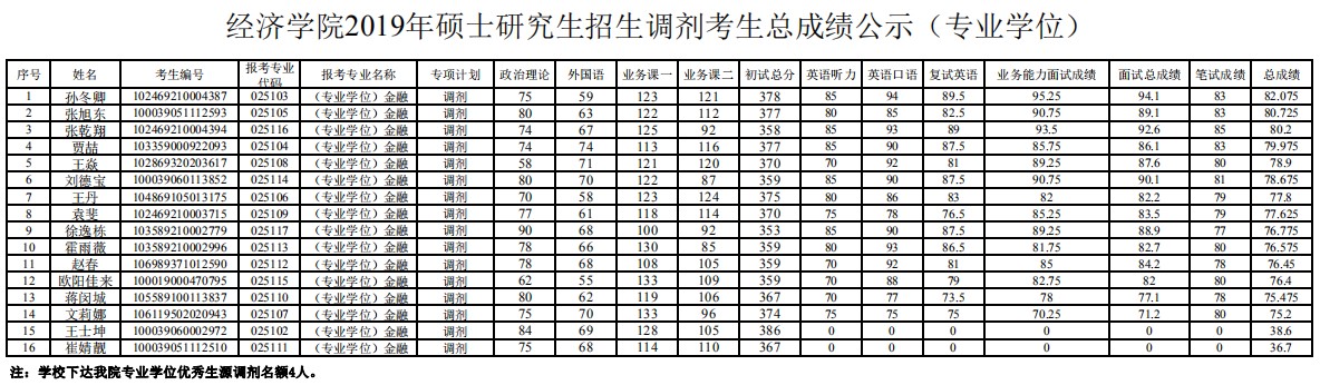 据悉,兰州大学经济学院2019年学硕和专硕研究生调剂考生总成绩公示已公布,聚创兰州大学考研网小编为你整理如下内容: