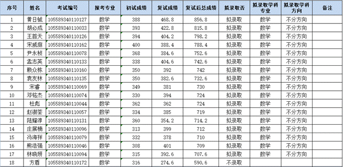 据悉,关于中山大学数学学院2019年硕士研究生招生拟录取结果公示目前已公布,聚创中山大学考研网小编为大家整理如下: