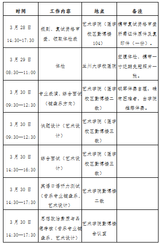 据悉,2019年兰州大学艺术学院研究生招生第二轮复试工作安排已公布,聚创兰州大学考研网小编为你整理如下内容: