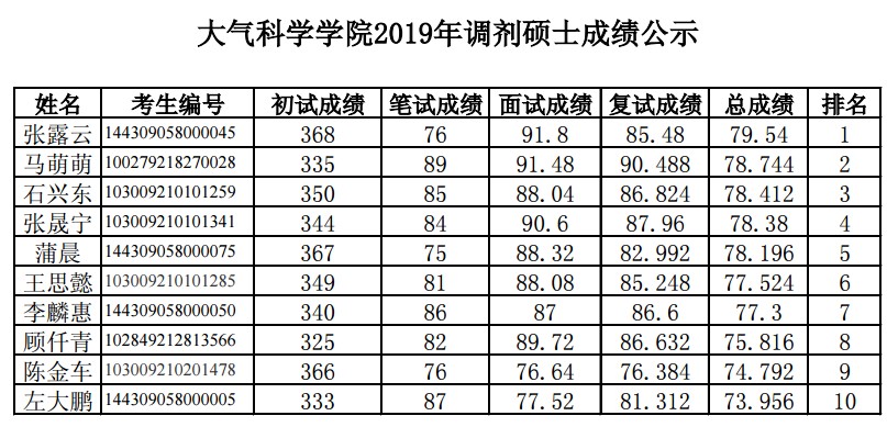 以上是聚创考研网为考生整理的"兰州大学大气科学学院2019年调剂硕士成绩公示"的相关考研信息,希望对大家考研备考有所帮助! 备考过程中如有疑问,也可以添加老师微信juchuang911进行咨询。