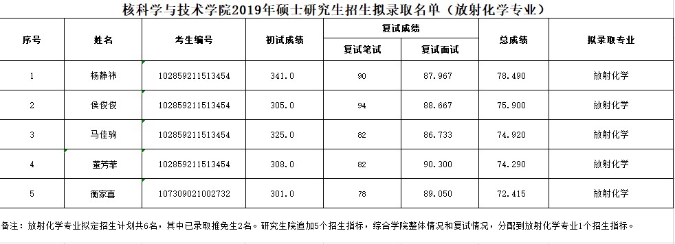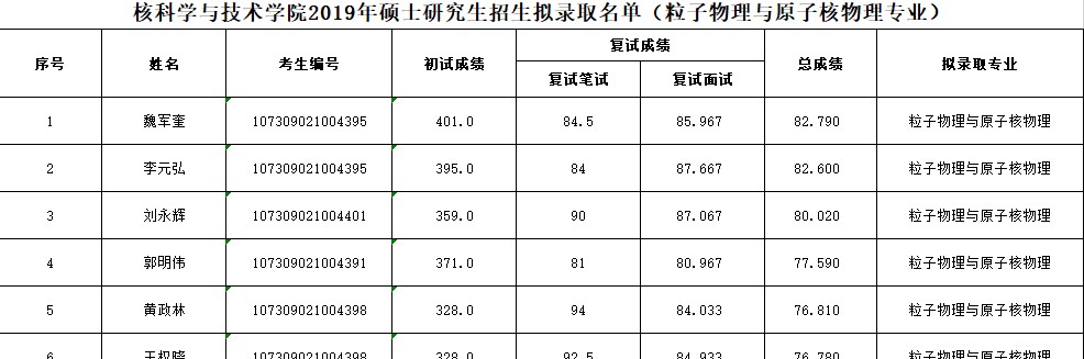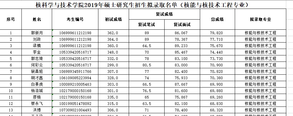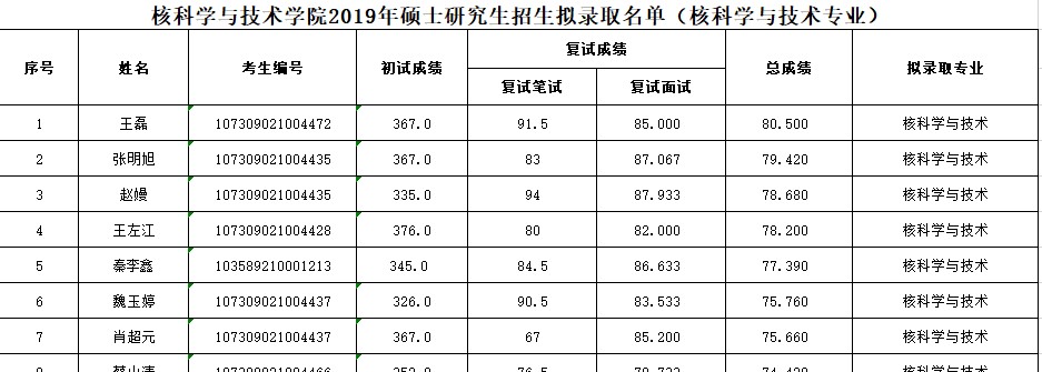 附件:核科学与技术学院2019年硕士研究生招生拟录取名单(核科学与技术)