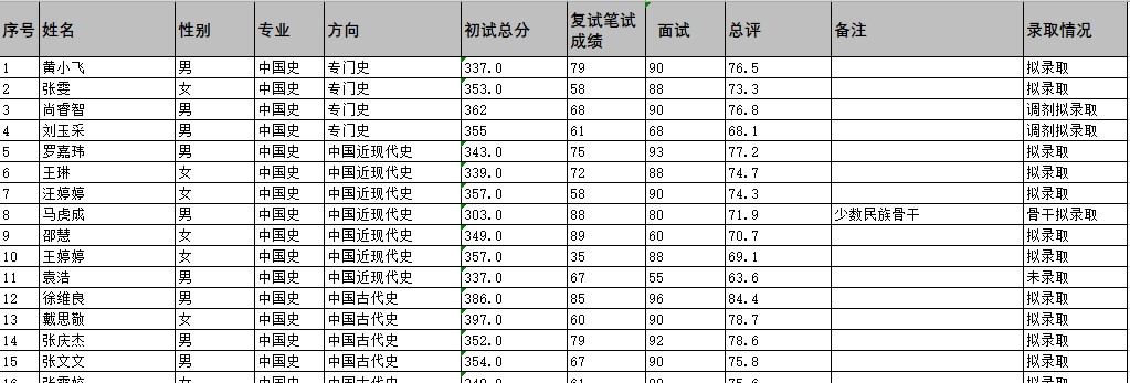 以上是聚创考研网为考生整理的"兰州大学历史文化学院2019年硕士研究生复试成绩及拟录取名单"的相关考研信息,希望对大家考研备考有所帮助! 备考过程中如有疑问,也可以添加老师微信juchuang911进行咨询。