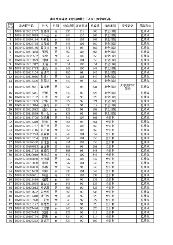以上是聚创考研网为考生整理的"2019年南京大学法学院法律硕士拟录取名单"的相关考研信息,希望对大家考研备考有所帮助! 备考过程中如有疑问,也可以添加老师微信juchuang911进行咨询。