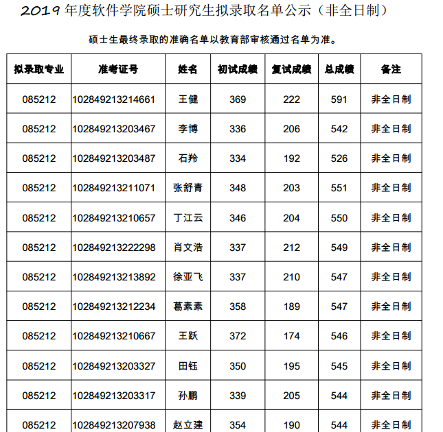 完整版请查看附件:2019年度软件学院硕士研究生拟录取名单公示(非全日制).pdf