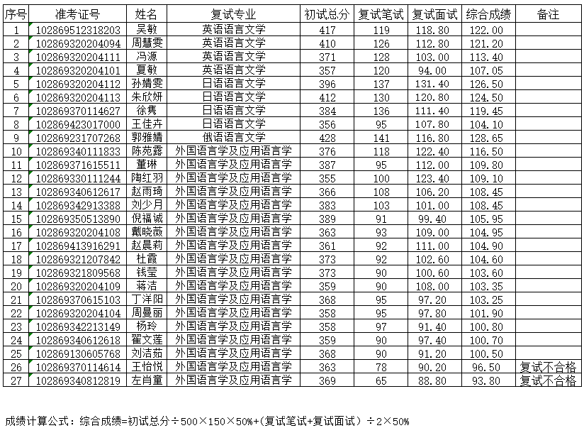 据悉,东南大学2019年外国语学院学术硕士生复试结果目前已公布,聚创东南大学考研网小编为大家整理如下: