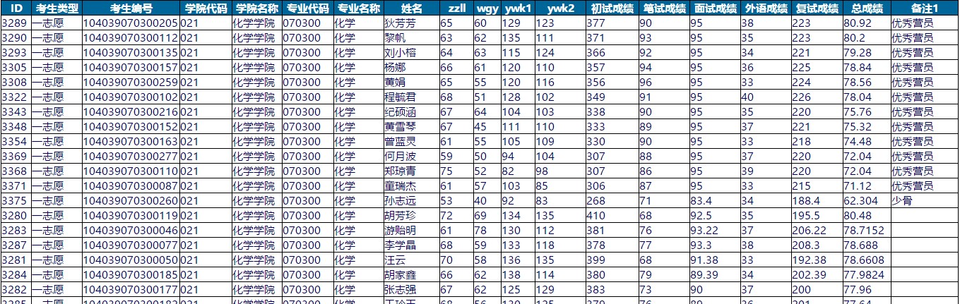 附件:化学学院2019年硕士研究生入学考试总成绩