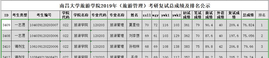 据悉,南昌大学旅游学院2019年旅游管理(含专硕)复试总成绩及排名公示已公布,聚创南昌大学考研网小编为你整理如下内容