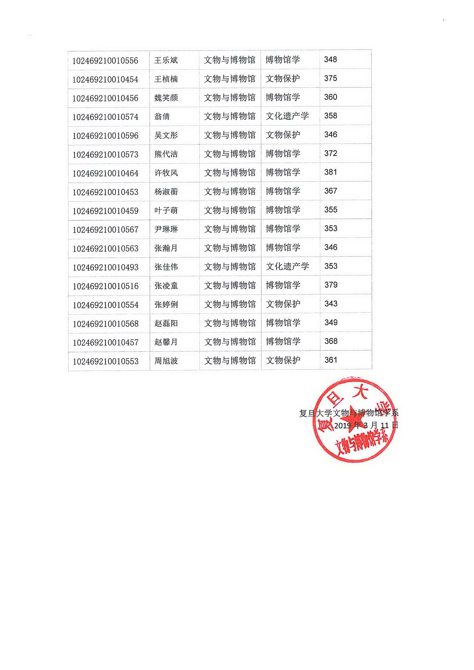 以上是聚创考研网为考生整理的"复旦大学文博系2019年硕士研究生招生进入复试学生名单"的相关考研信息,希望对大家考研备考有所帮助!