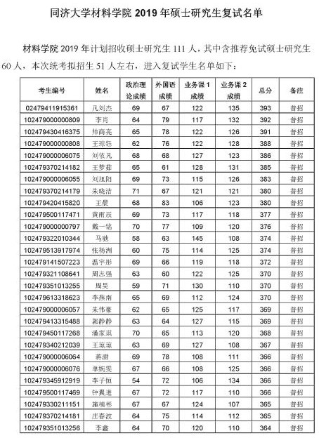 以上是聚创考研网为考生整理的"同济大学2019年材料科学与工程学院硕士研究生复试名单"的相关考研信息,希望对大家考研备考有所帮助!