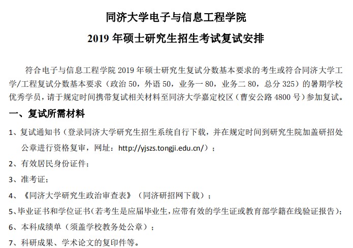附件:同济大学电子与信息工程学院2019年硕士研究生招生考试复试安排