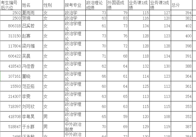 附件:政治与国际关系学院2019年硕士统招进入复试名单