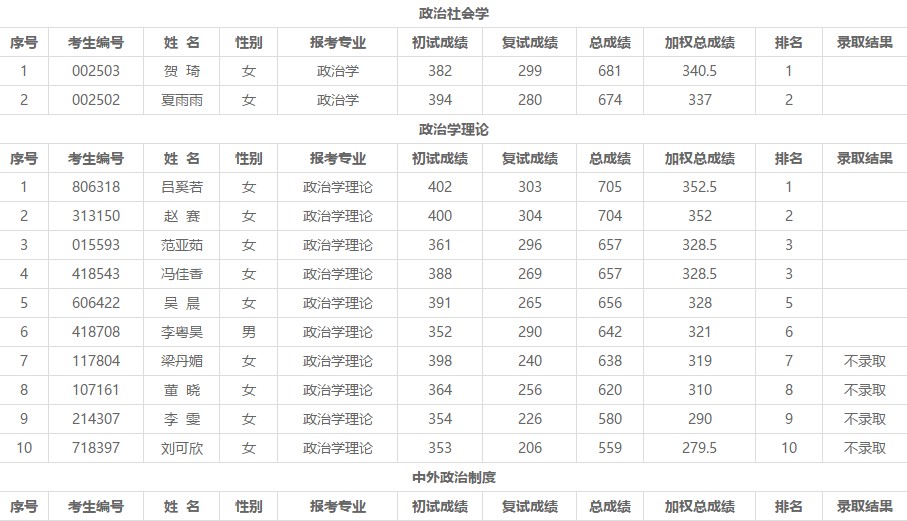 附件:政治与国际关系学院2019硕士复试结果公布