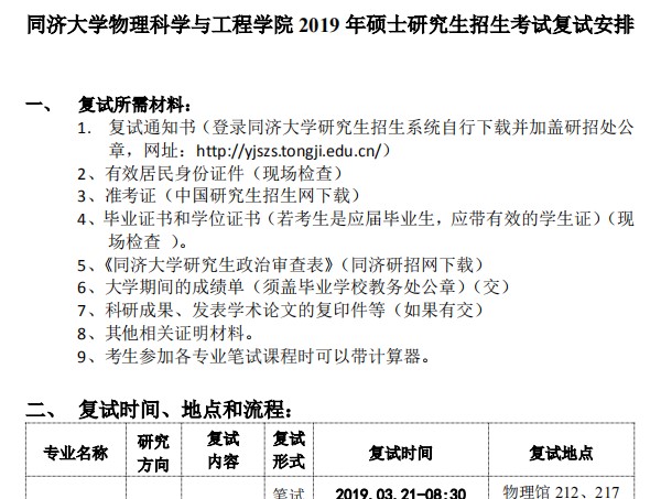 以上是聚创考研网为考生整理的"同济大学物理科学与工程学院2019年硕士研究生招生考试复试安排"的相关考研信息,希望对大家考研备考有所帮助! 备考过程中如有疑问,也可以添加老师微信juchuang911进行咨询。