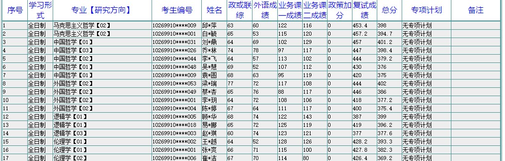 附件:华东师范大学人文社会科学学院哲学系硕士研究生录取名单公示
