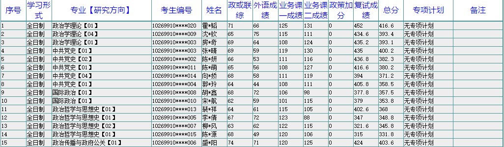 附件:华东师范大学人文社会科学学院政治学系硕士研究生录取名单公示