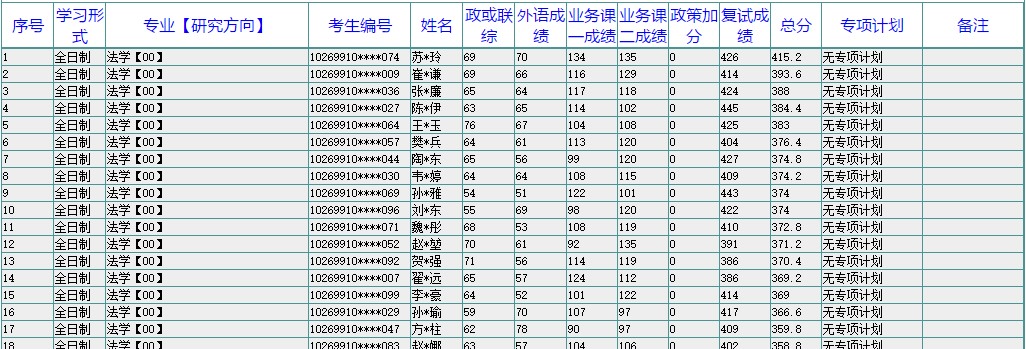 附件:华东师范大学法学院硕士研究生录取名单公示