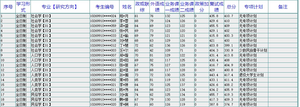 附件:华东师范大学社会发展学院硕士研究生录取名单公示