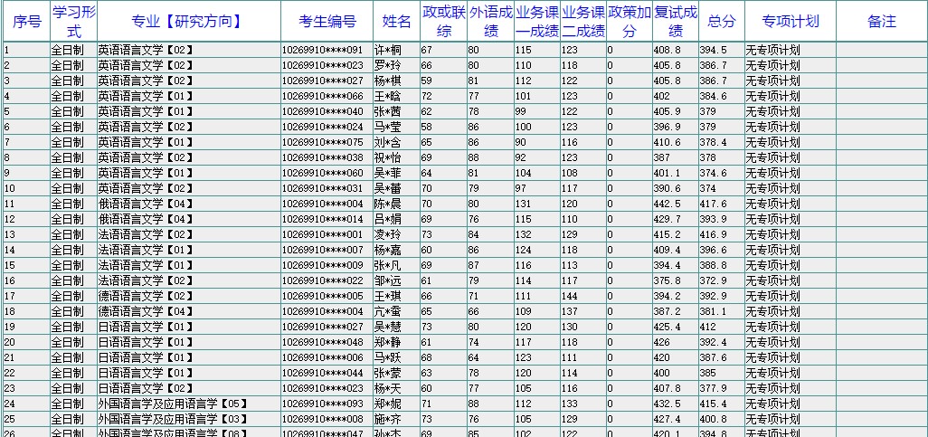 附件:华东师范大学外语学院硕士研究生录取名单公示