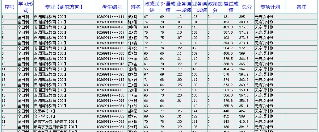 附件:华东师范大学国际汉语文化学院硕士研究生录取名单公示