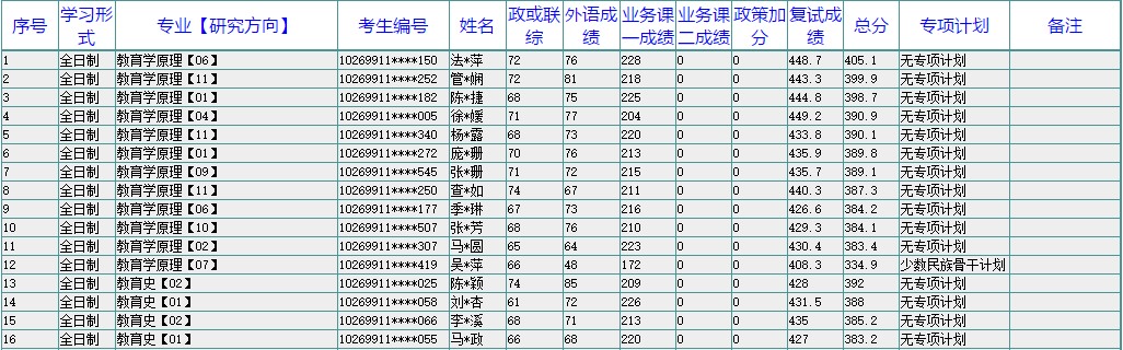 附件:华东师范大学教育学部教育学系硕士研究生录取名单公示