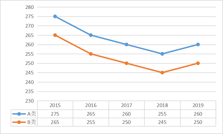 为了方便2020考研的同学,聚创考研信息网小编整理了2015-2019年工学照顾专业总分国家线趋势图及单科复试分数,以供大家参考: