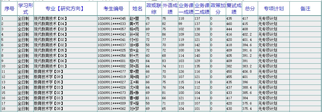 附件:华东师范大学教育学部教育信息技术学系硕士研究生录取名单公示