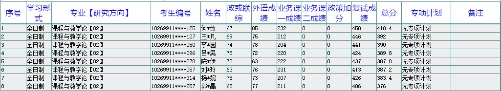 附件:华东师范大学教育学部课程与教学系硕士研究生录取名单公示