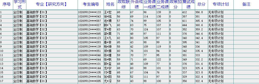 附件:华东师范大学数学科学学院硕士研究生录取名单公示