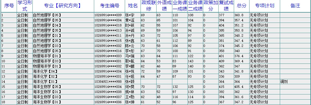 附件:华东师范大学河口海岸科学研究院硕士研究生录取名单公示