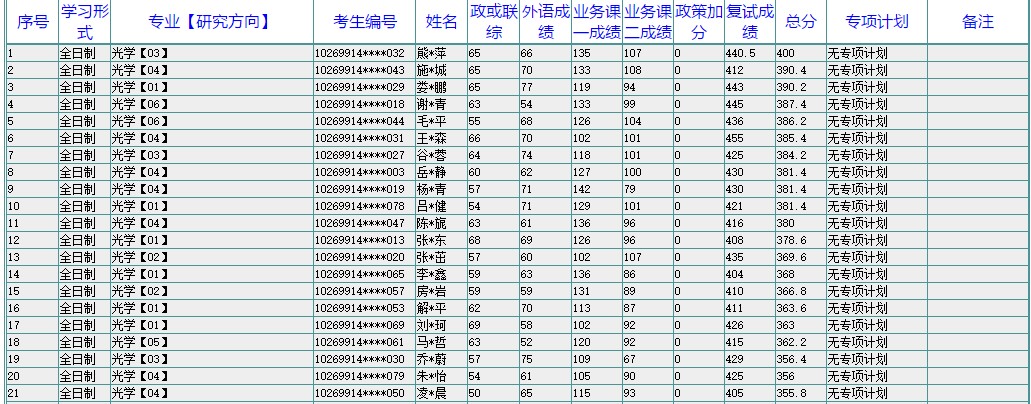 附件:华东师范大学精密光谱科学与技术国家重点实验室硕士研究生录取名单公示