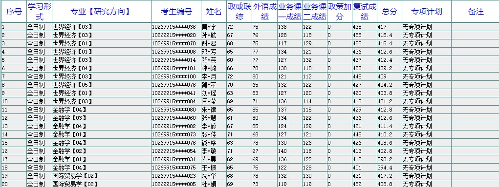 附件:华东师范大学经济与管理学部经济学院硕士研究生录取名单公示