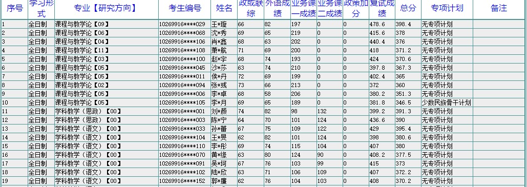 附件:华东师范大学教育学部教师教育学院硕士研究生录取名单公示