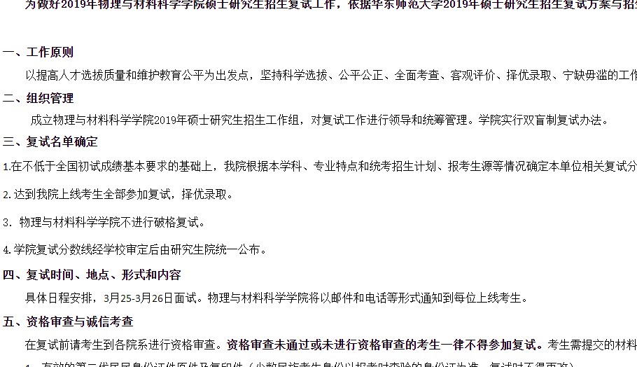附件:物理与材料科学学院2019年硕士研究生招生复试工作办法