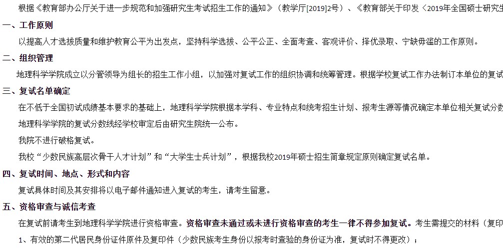 附件:地理科学学院2019年硕士研究生招生复试工作办法