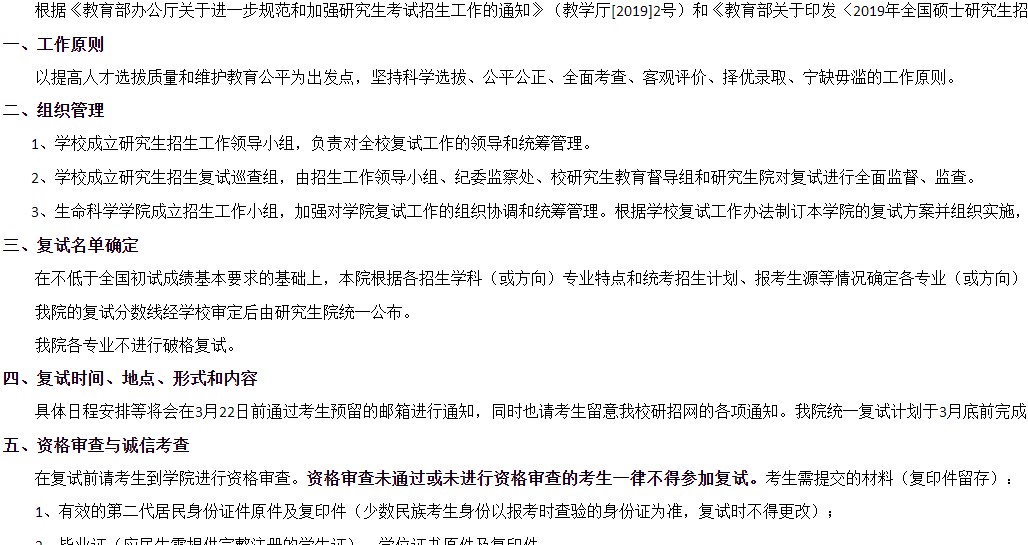 附件:华东师范大学生命科学学院2019年硕士研究生招生复试工作办法