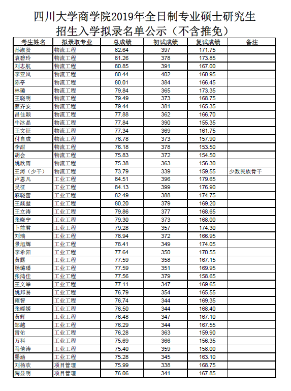 据悉,四川大学商学院2019年全日制专业硕士研究生招生入学拟录名单公示(不含推免)已公布,聚创四川大学考研网小编为大家整理如下: